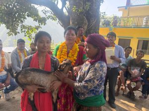 तारा नमस्ते फाउन्डेशनद्वारा गण्डकी–७ का चेपाङ समुदायलाई टनेल प्लास्टिक र बाख्रा वितरण