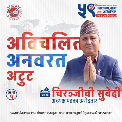 • चितवन उद्योग वाणिज्य संघको अध्यक्षमा चिरन्जीबी सुवेदी विजयी