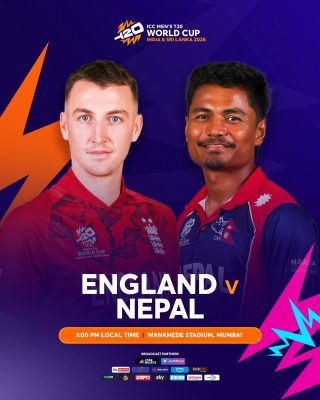 टि-२० विश्वकप: इंग्ल्याण्डसँग नेपाल ४ रनले पराजित