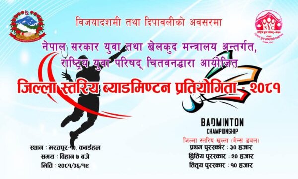 चितवनमा भोलि जिल्ला–स्तरीय ब्याडमिन्टन प्रतियोगिता हुने